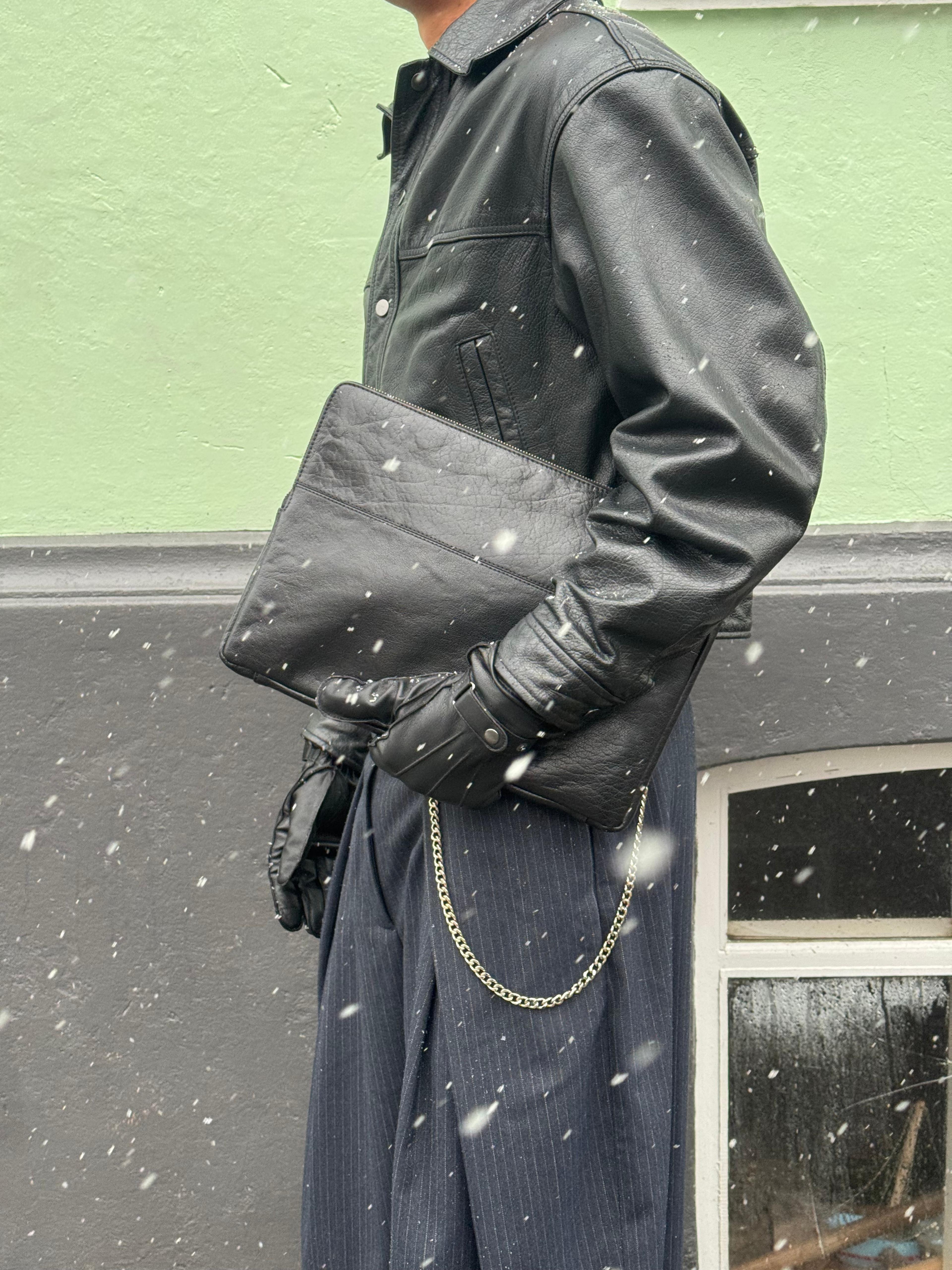 California mini črna usnjena torba čez ramo