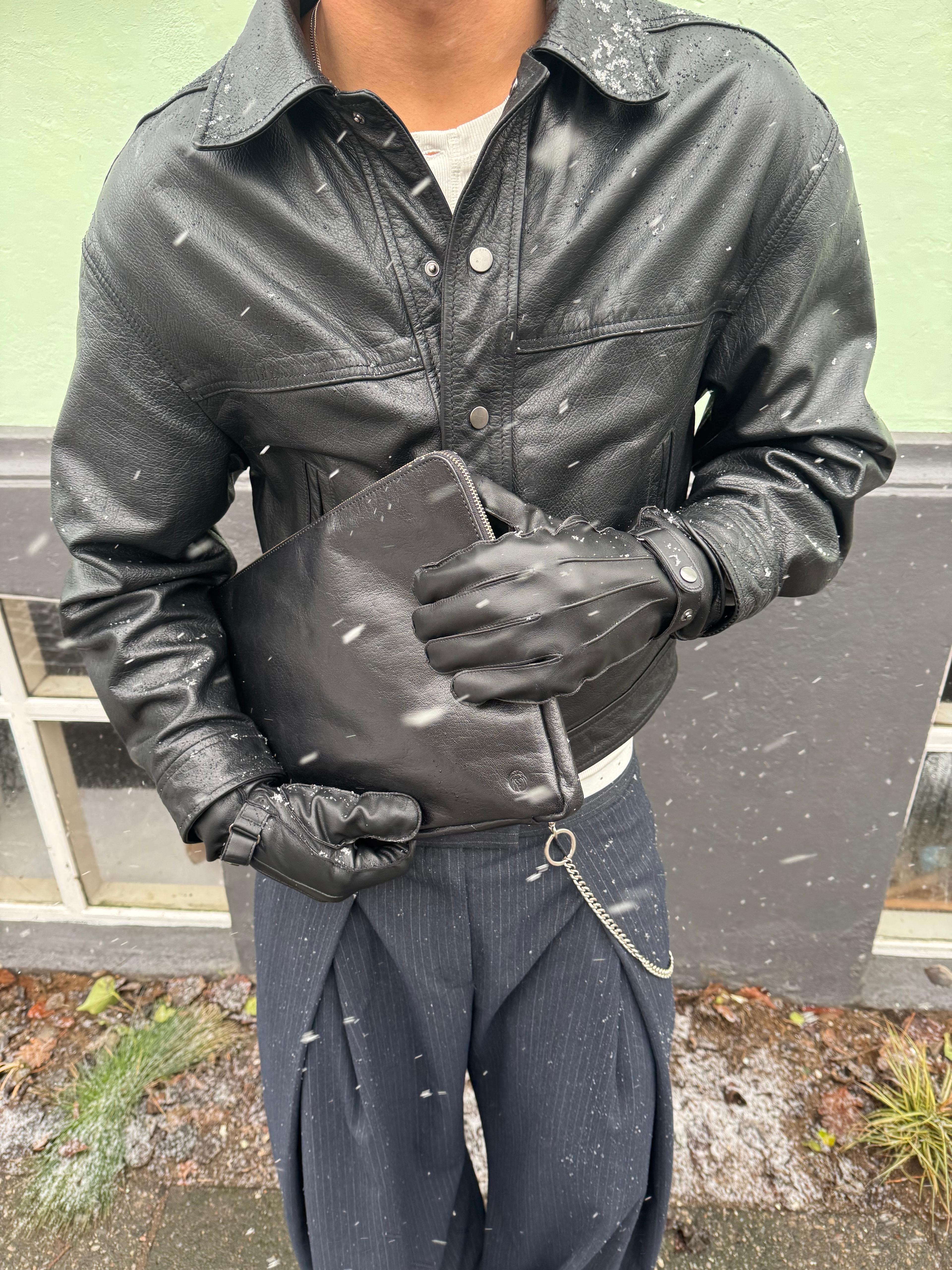 California črn usnjen nahrbtnik